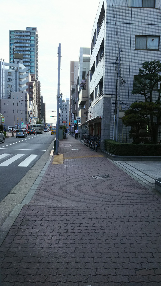 ファミリーマートがある二つ目の大きい交差点を、向かい側に渡ります。